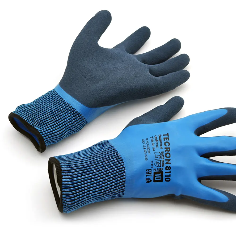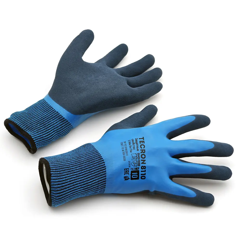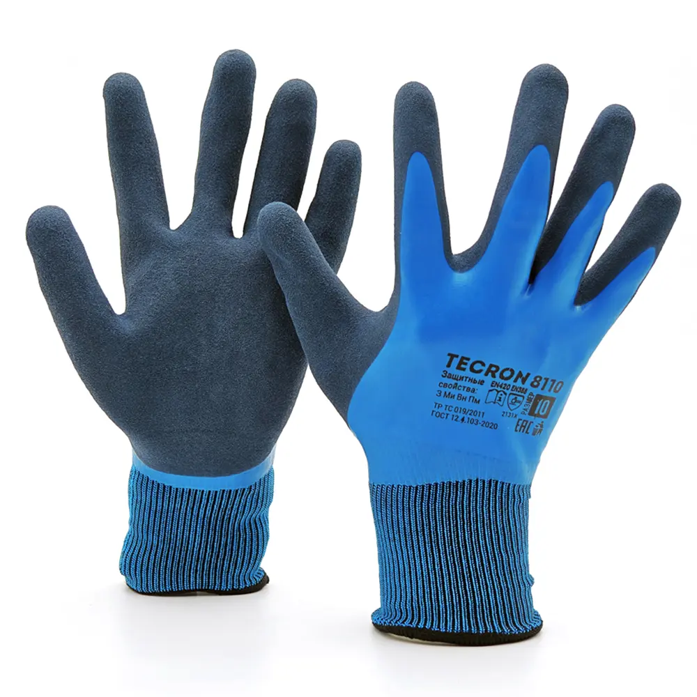 Защитные перчатки TECRON 8110 с латексным покрытием разработаны для надёжной защиты рук от механического воздействия и влаги при различных механических и строительно-монтажных работах. Произведены по стандарту ГOCT 12.4.103-2020 и EN388 с классом защиты 2131X эти перчатки обеспечивают высокую степень захвата скользких и гладких предметов, обладают эластичностью, мягкостью и комфортом в использовании, обеспечивают защиту рук от производственных загрязнений и влаги, сохраняя высокую степень цепкости.