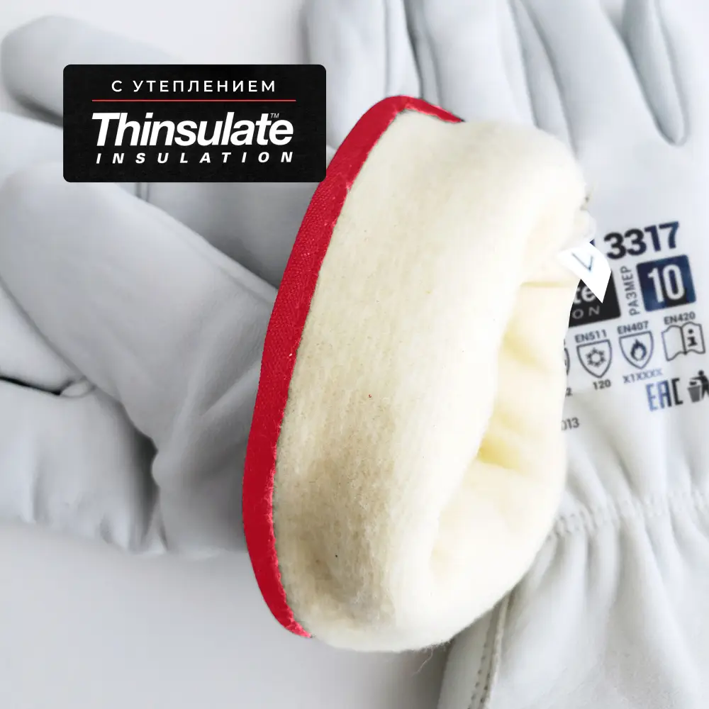 Кожаные перчатки из мягкой натуральной кожи TECRON™ 3317 с утеплителем из оригинального Thinsulate производства 3М защищают руки от механических воздействий, проколов и порезов, а также от искр, брызг расплавленного металла, порошков, грязи, химических загрязнений, металлической и иной стружки, смазки. Применяются в автомобильной промышленности, строительстве и ремонте, сельском хозяйстве, лесной промышленности.