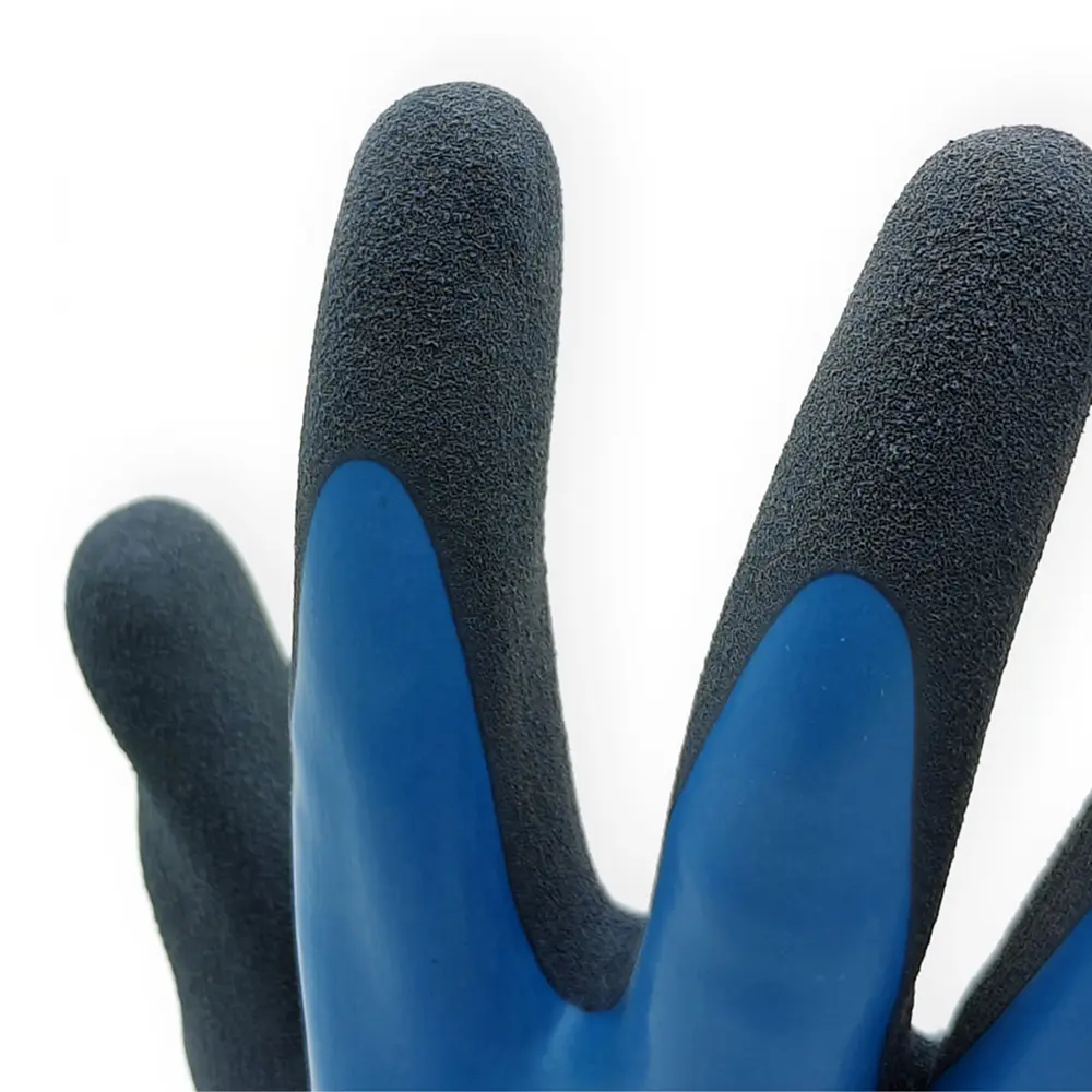 Первый слой латексного покрытия обеспечивает влагонепроницаемые свойства перчатки, что позволяет их применять в широком спектре работ с влажными поверхностями.