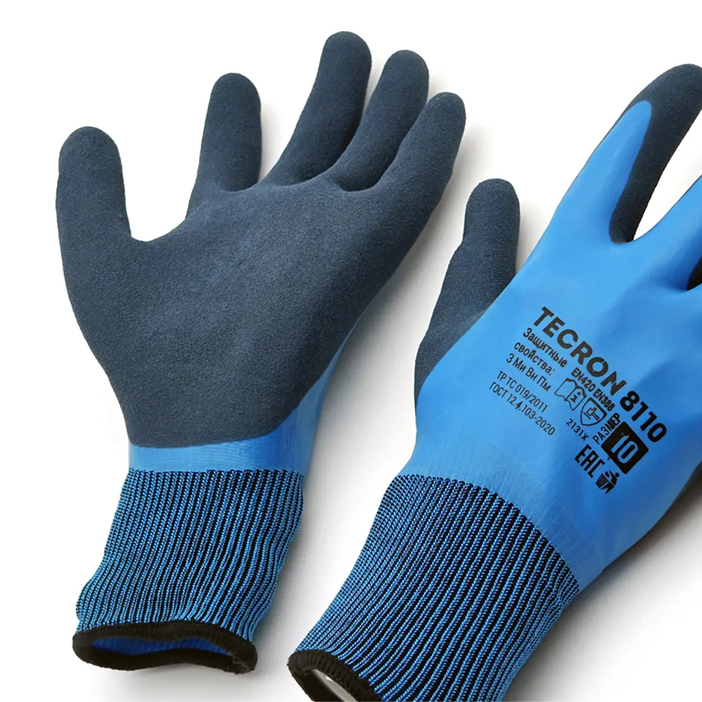 Защитные перчатки TECRON 8110 с латексным покрытием разработаны для надёжной защиты рук от механического воздействия и влаги при различных механических и строительно-монтажных работах. Произведены по стандарту ГOCT 12.4.103-2020 и EN388 с классом защиты 2131X эти перчатки обеспечивают высокую степень захвата скользких и гладких предметов, обладают эластичностью, мягкостью и комфортом в использовании, обеспечивают защиту рук от производственных загрязнений и влаги, сохраняя высокую степень цепкости.