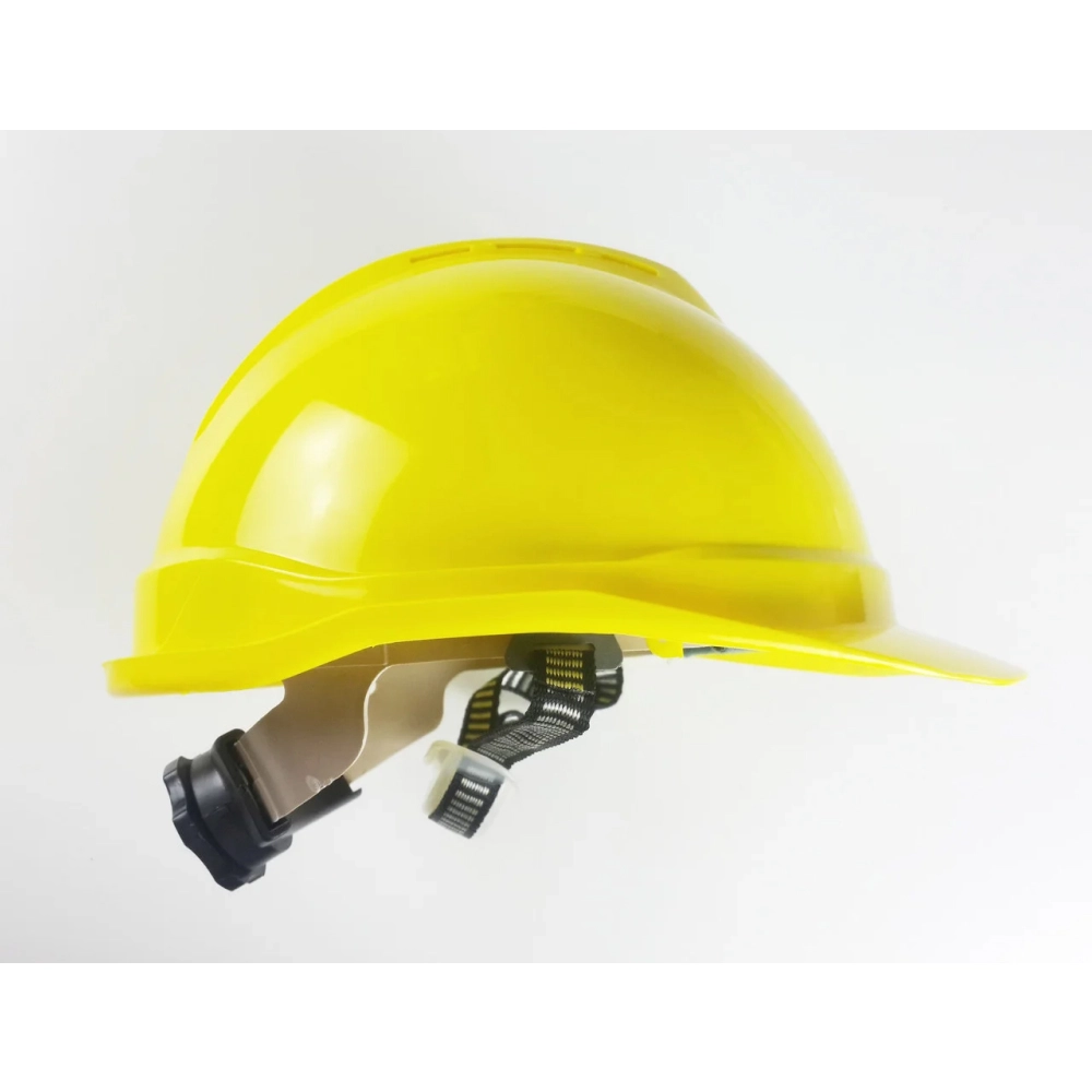 Каска из высококачественного ABS пластика. Высокое защитное действие против механических воздействий и высокая химическая устойчивость.  Безупречная посадка и высокий комфорт ношения. Оголовье из текстильных лент имеет 6 точек крепления. Регулируемое наголовное крепление реечного типа с храповиком для правильной подгонки по размеру головы.